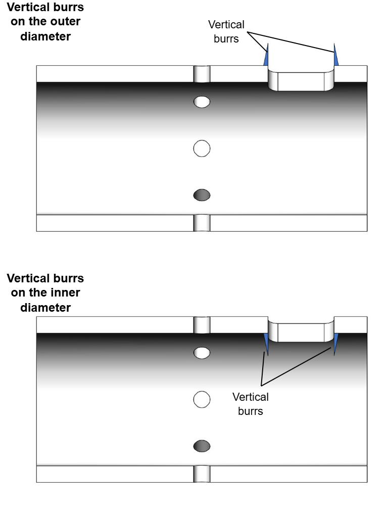 - As shown in the figure below, burrs are more easily removed when they protrude vertically from the workpiece surface.