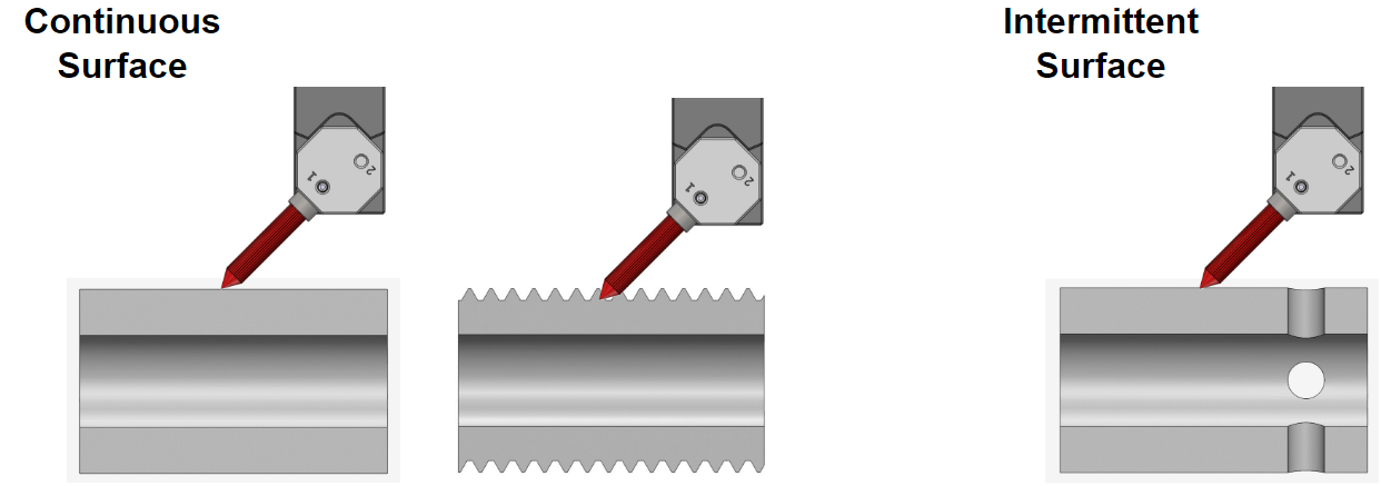 When using the product on an intermittent surface, the maximum depth of cut is 0.5 mm. The figure below shows examples of continuous and intermittent surfaces.