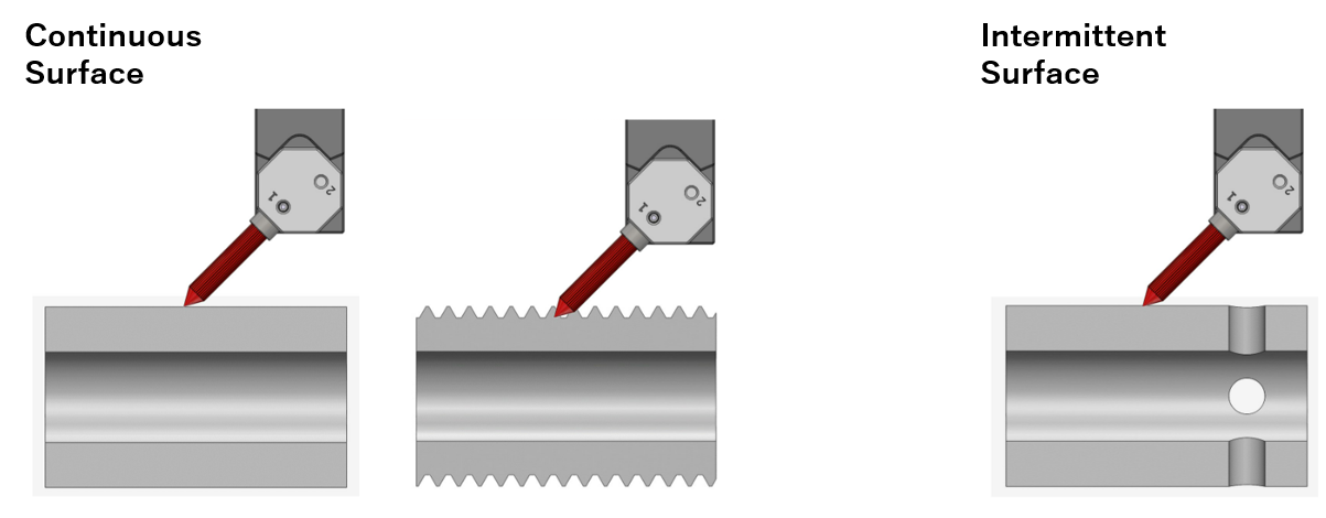 When using the product on an intermittent surface, the maximum depth of cut is 0.5 mm. The figure below shows examples of continuous and intermittent surfaces.